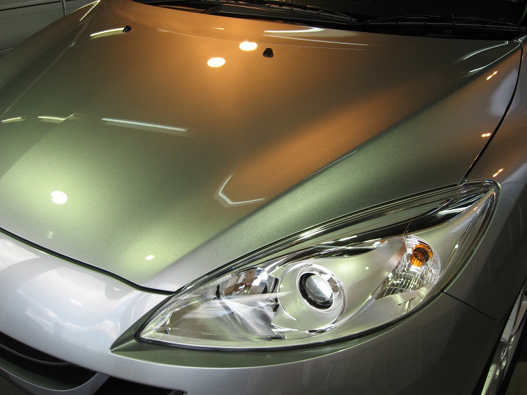 新車登録から2年半経過していたため、雨染みの付着、洗車などによる小キズがボディ全体にありましたが、ポリッシャーにて雨染み、小キズを除去し、コーティングを定着させるための下地処理の磨きを行い!!高膜厚のクリアエレメントFXを施工させて頂きました (^^)v