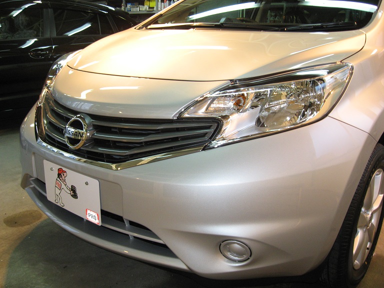 ニッサン ノートに親水基と撥水基のコラボレーションで排水性を高めることで防汚効果を高めたプロコーティングPCX−S7を施工させて頂きました(^。^)